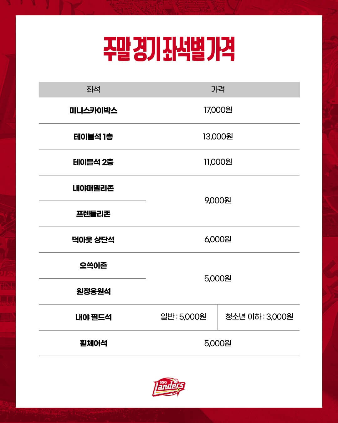 - SSG 랜더스 멤버십 회원이라면 할인 혜택이 제공될 가능성이 높습니다.